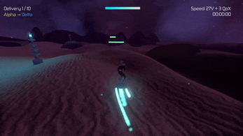You play as a futuristic delivery driver who surfs through the planetary desert to deliver precious Syntech to the various space stations.
